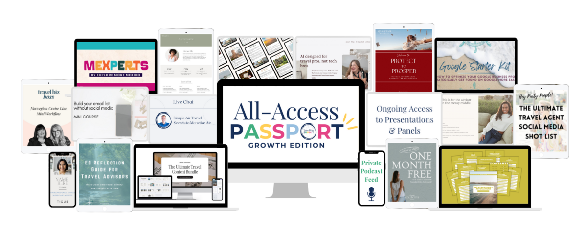 The Ultimate Travel Content Bundle gives travel advisors everything they need to plan, post, and grow their travel brand without the burnout. From ready-to-use email templates and content checklists to 50 video ideas, a TikTok carousel guide, and a curated hashtag bank, this bundle takes the guesswork out of social media. You’ll walk away with plug-and-play tools that save time, spark creativity, and help you consistently show up online with confidence. - $19 Value
