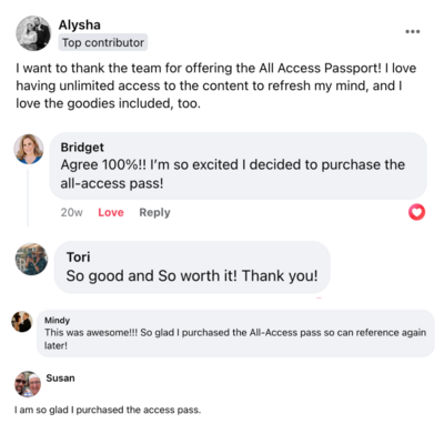 The All-Access Passport is packed with value and even if you only signed up for a few of the bonus resources, you’d still be saving compared to buying them at regular price!