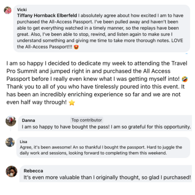 While some learning experiences may explore many unconnected topics and overwhelm can creep in, the Travel Pro Summit series provides single-focus virtual events to help us dive deep into one aspect of our business at a time. We may sometimes discuss and revisit a variety of topics - while looking at these through a new lens.