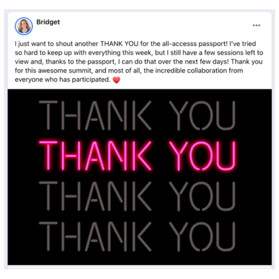 $1,000+ in bonus resources from our speakers and partners including templates, guides, trials, trainings, Q&A calls, workbooks, and more to to help you accomplish your goals fast!