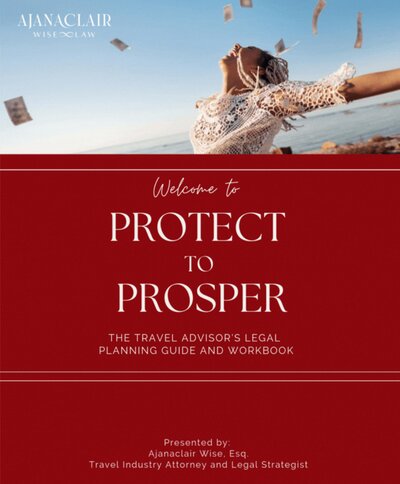 The Protect to Prosper Planning Guide & Workbook builds on your quiz results with deeper insights into the four pillars of legal health: Money, Brand, Boundaries, and Continuity. Inside, you’ll find plain-English breakdowns of common pitfalls, real-world examples from travel advisors, and guided exercises to apply the concepts directly to your business. More than a worksheet, it’s your roadmap to move from spotting risks to confidently addressing them. - $67 Value